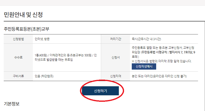 "민원 신청하기 "클릭