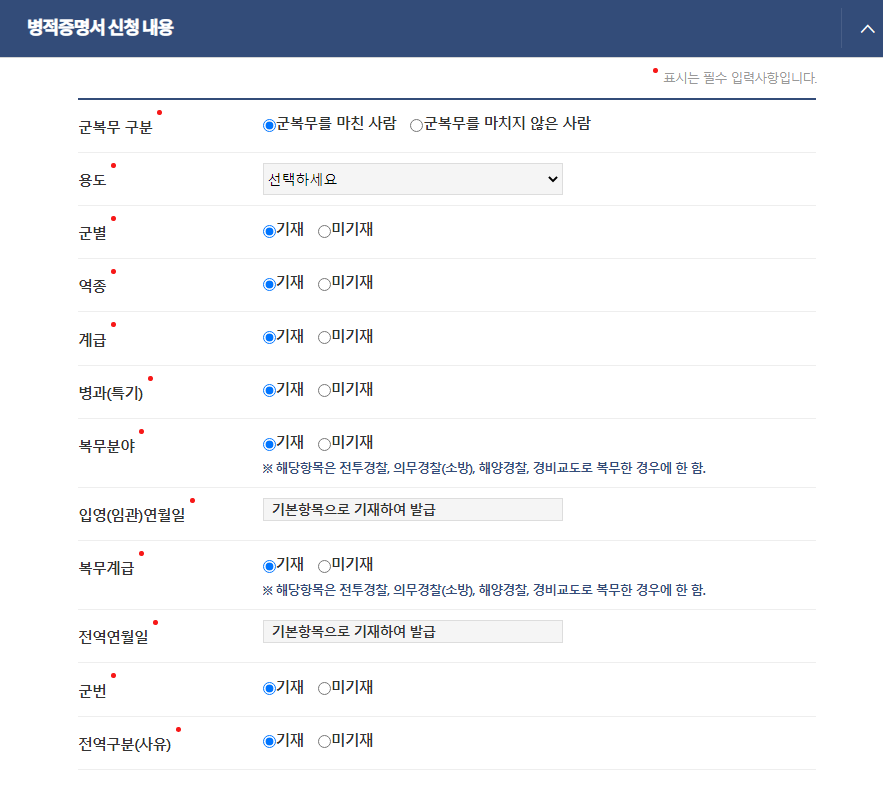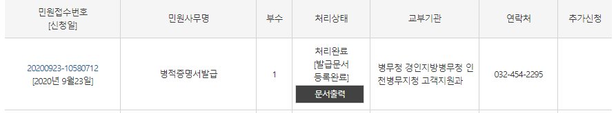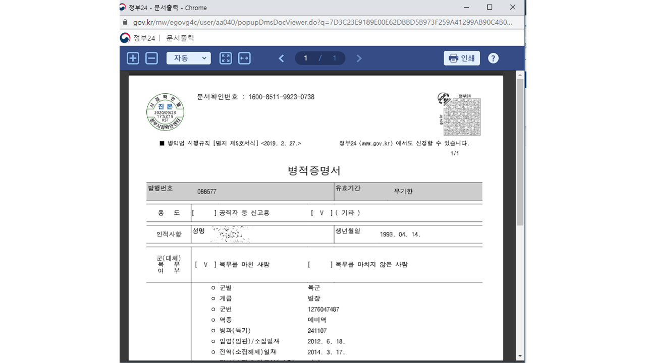 위처럼 병적 증명서가 출력이 됩니다.