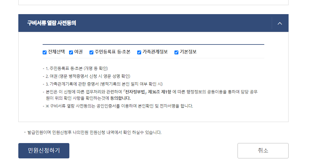 "민원 신청하기" 클릭