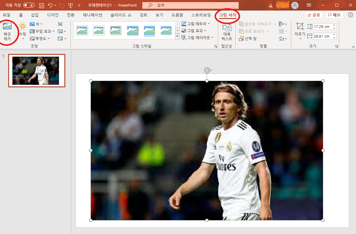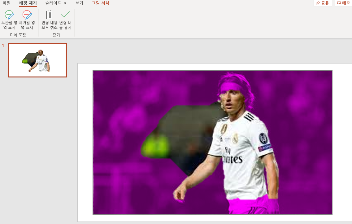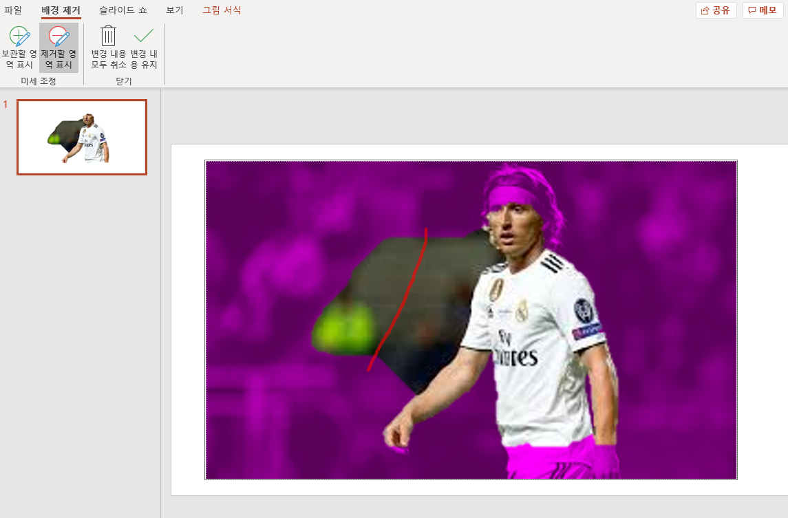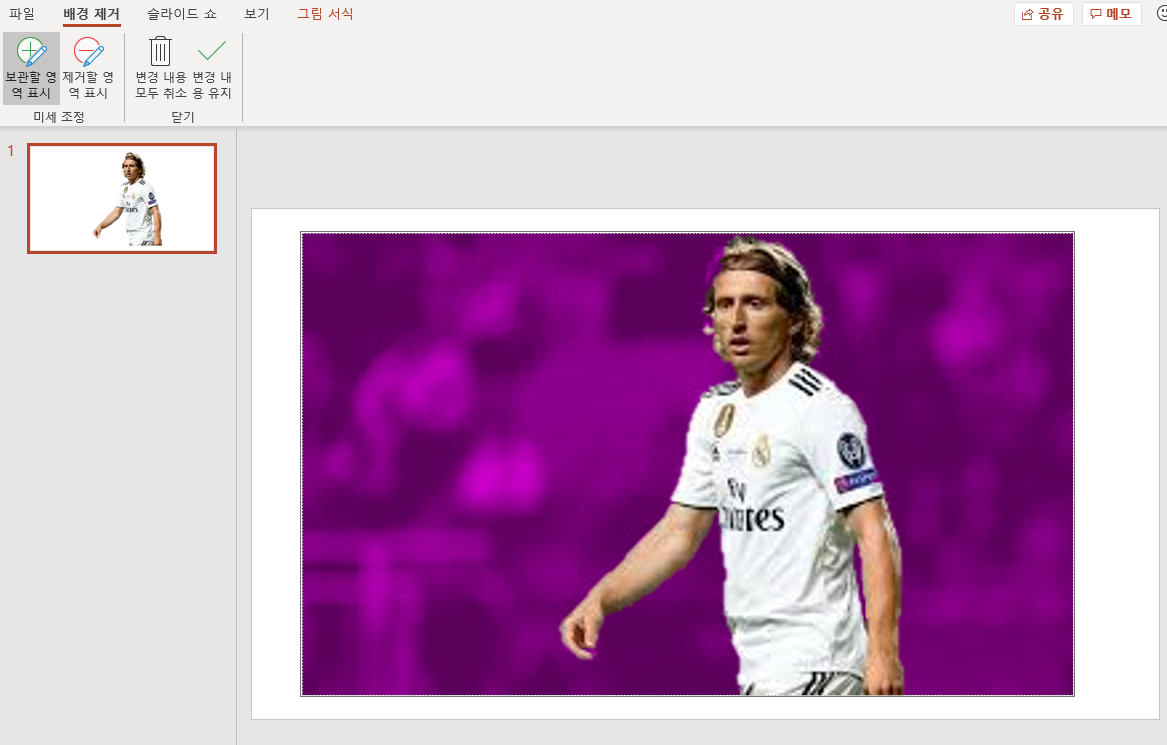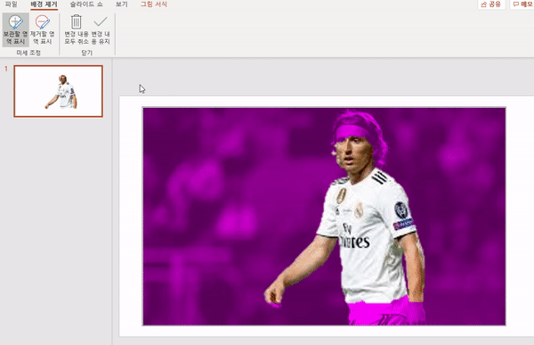 그림클릭 - (윗상단) 그림 서식 - 배경 제거