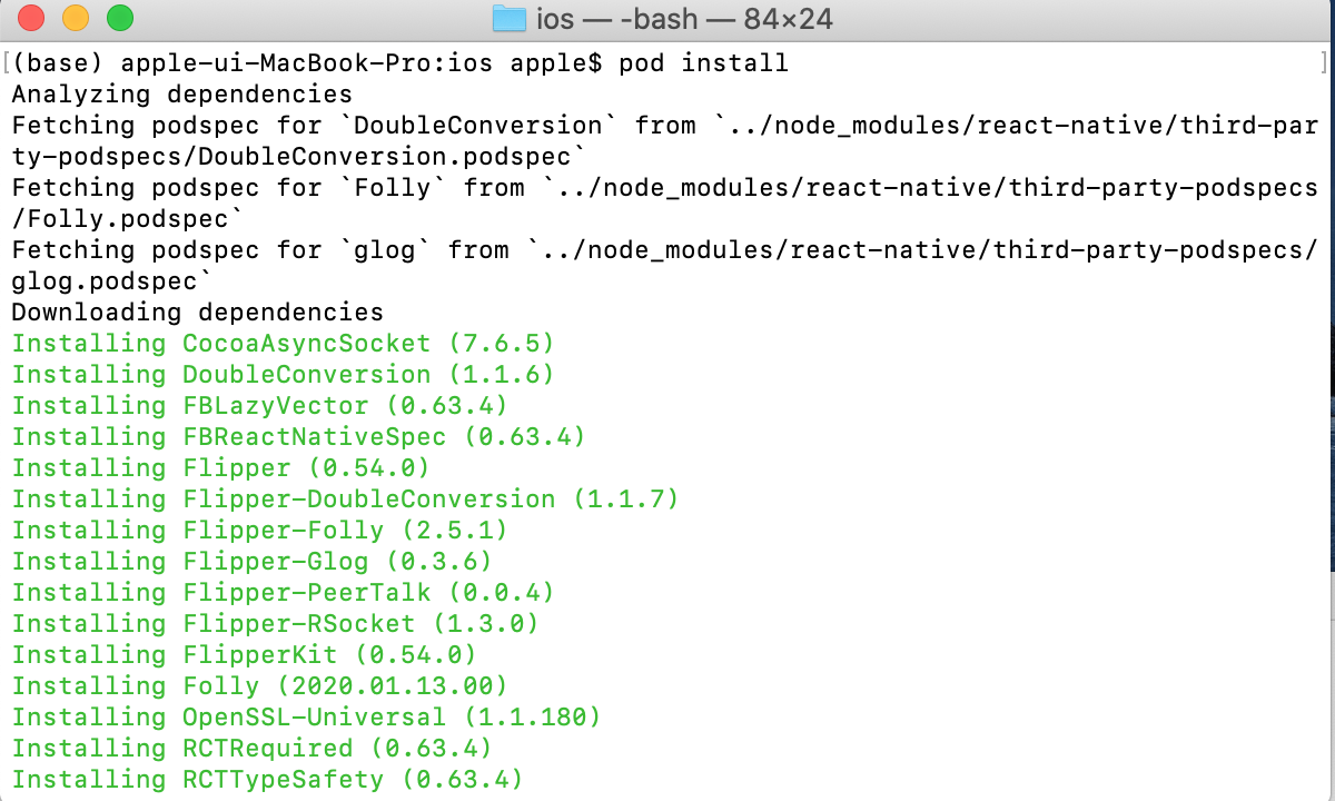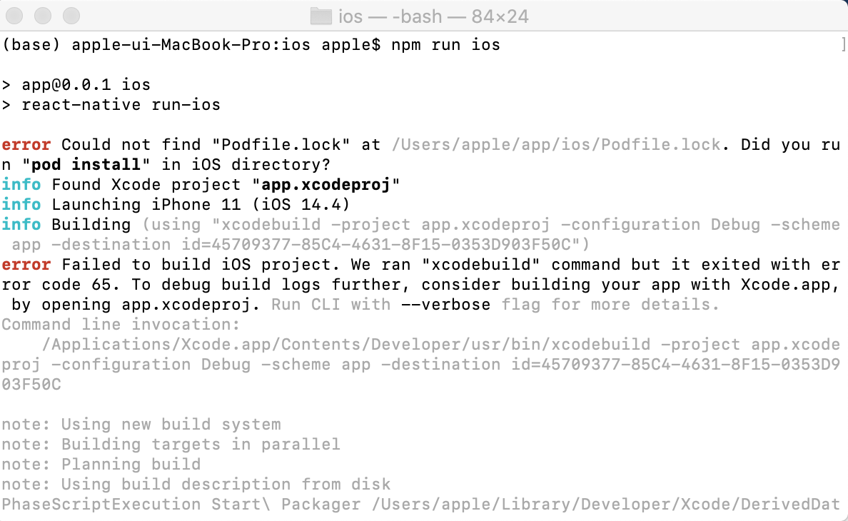 could not find "podfile.lock" at /users/apple/app/ios/podfile.lock. did you run "pod install" in ios directory?