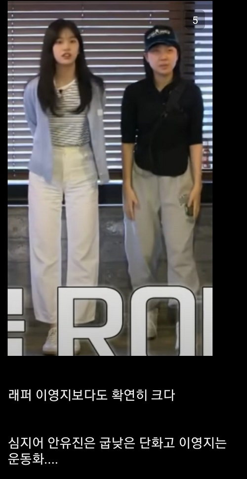 낮은 단화를 신은 안유진 vs 굽있는 운동화를 신은 이영지