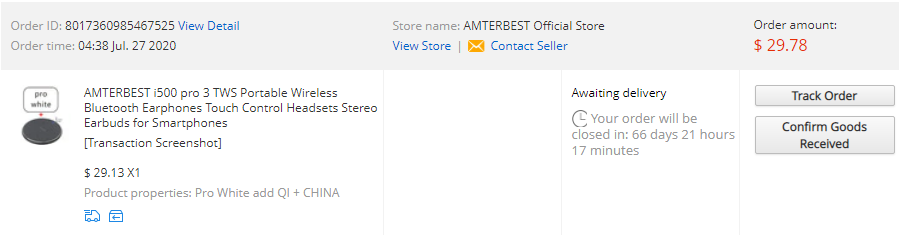7월 27일에 구매했는데 판매자가 곧바로 배송을 해줘 다음날 파견선적이라고 문구가떠