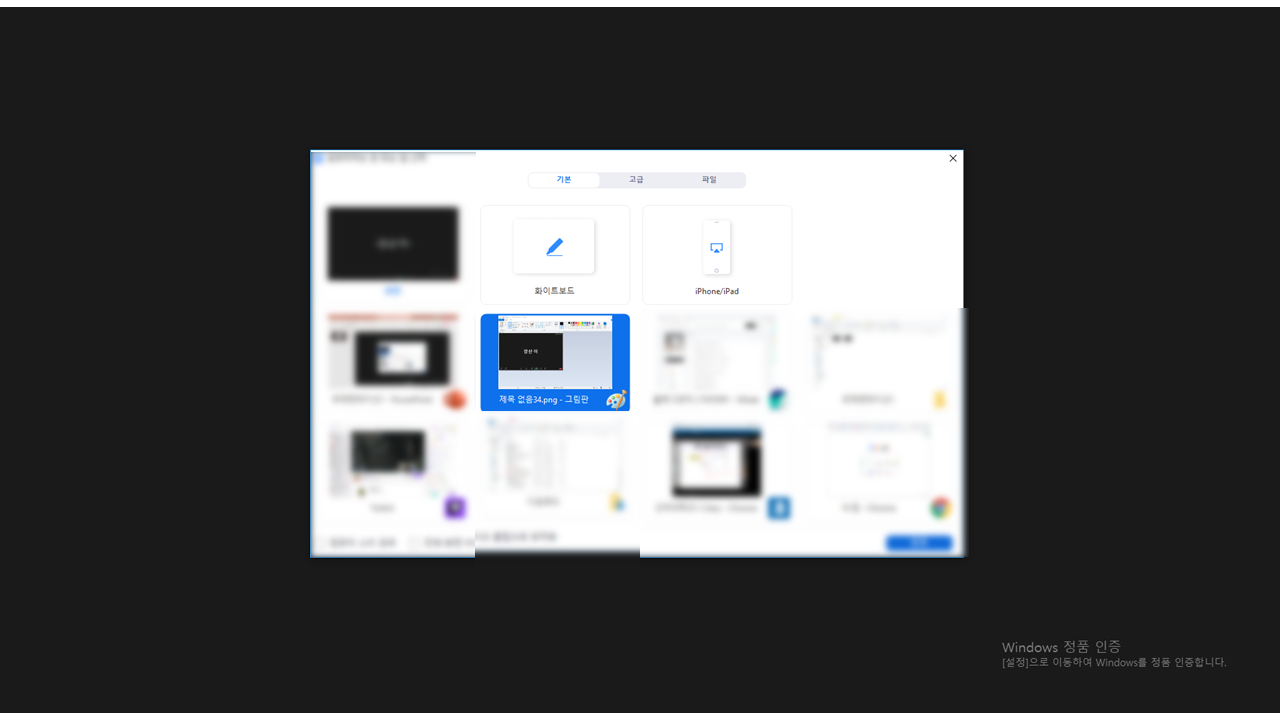 이 프로그램중 자신이 공유하고싶은 화면을 고루시면됩니다.